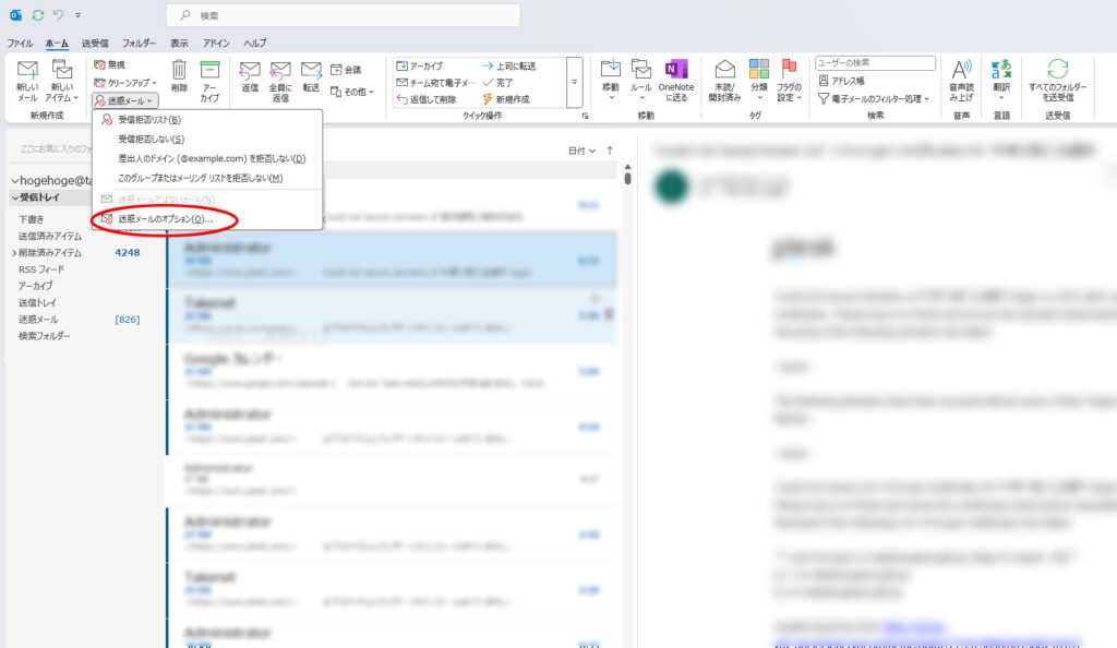 Outlook2021で迷惑メールを自動的に振り分ける方法