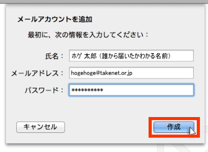 Take-netメール Macメール(OS X以降) の設定方法