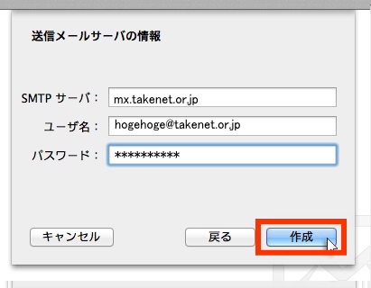 情報入力後、作成ボタンを押せば設定完了です。