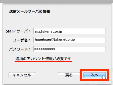 6.送信メールサーバの情報を入力